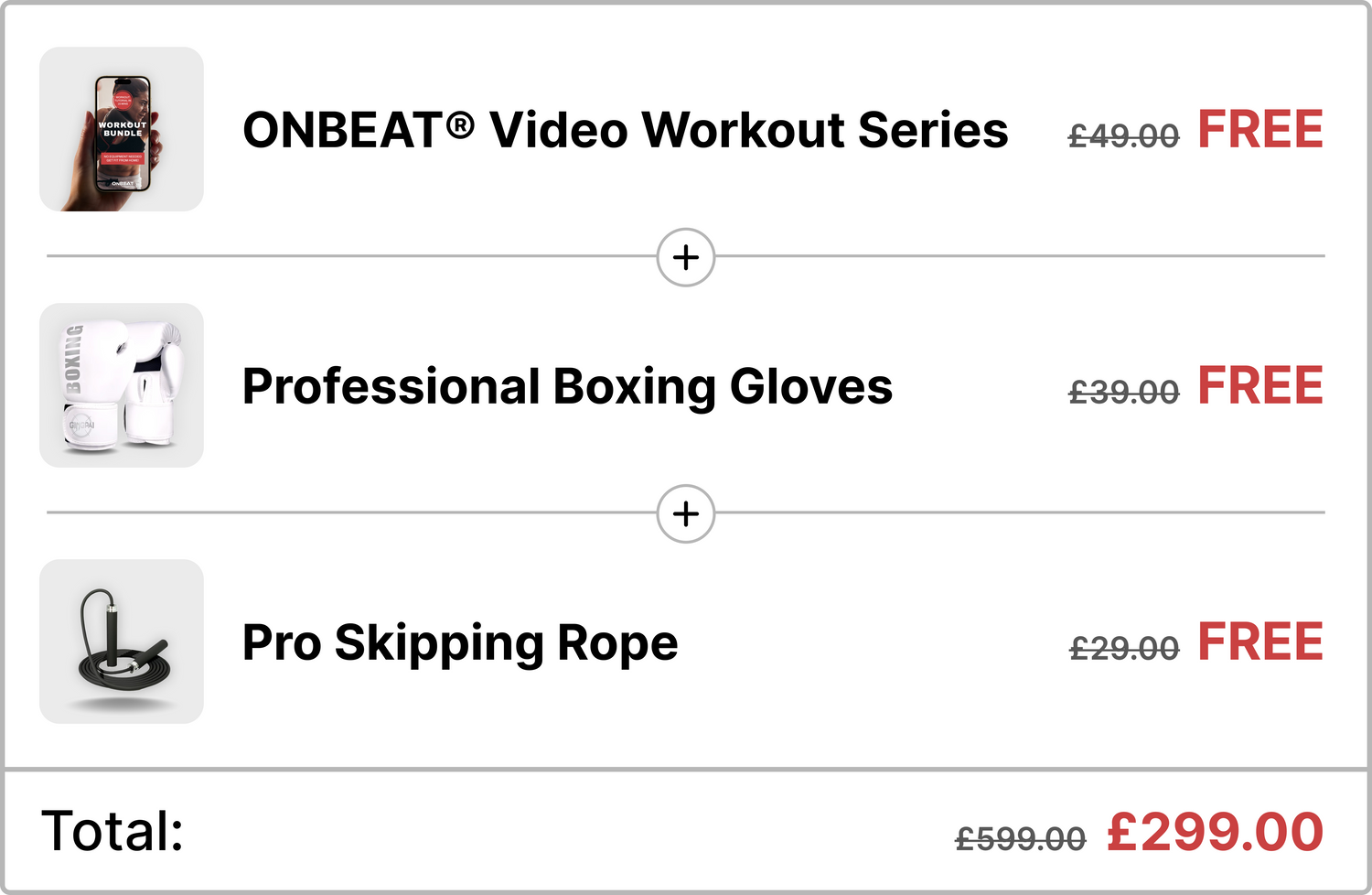 In addition, you’ll receive a three-part video workout series. This includes a full-body cardio workout, a shadowboxing routine, and a skipping rope workout. These follow-along videos are perfect for keeping you engaged and motivated while training from home. After your order is placed, you’ll receive an email from The ONBEAT Team with links to download your eBook and workout videos at no extra cost.